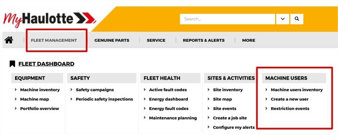 Machine users inventory: where you can see all machine operators' profiles and manage them.